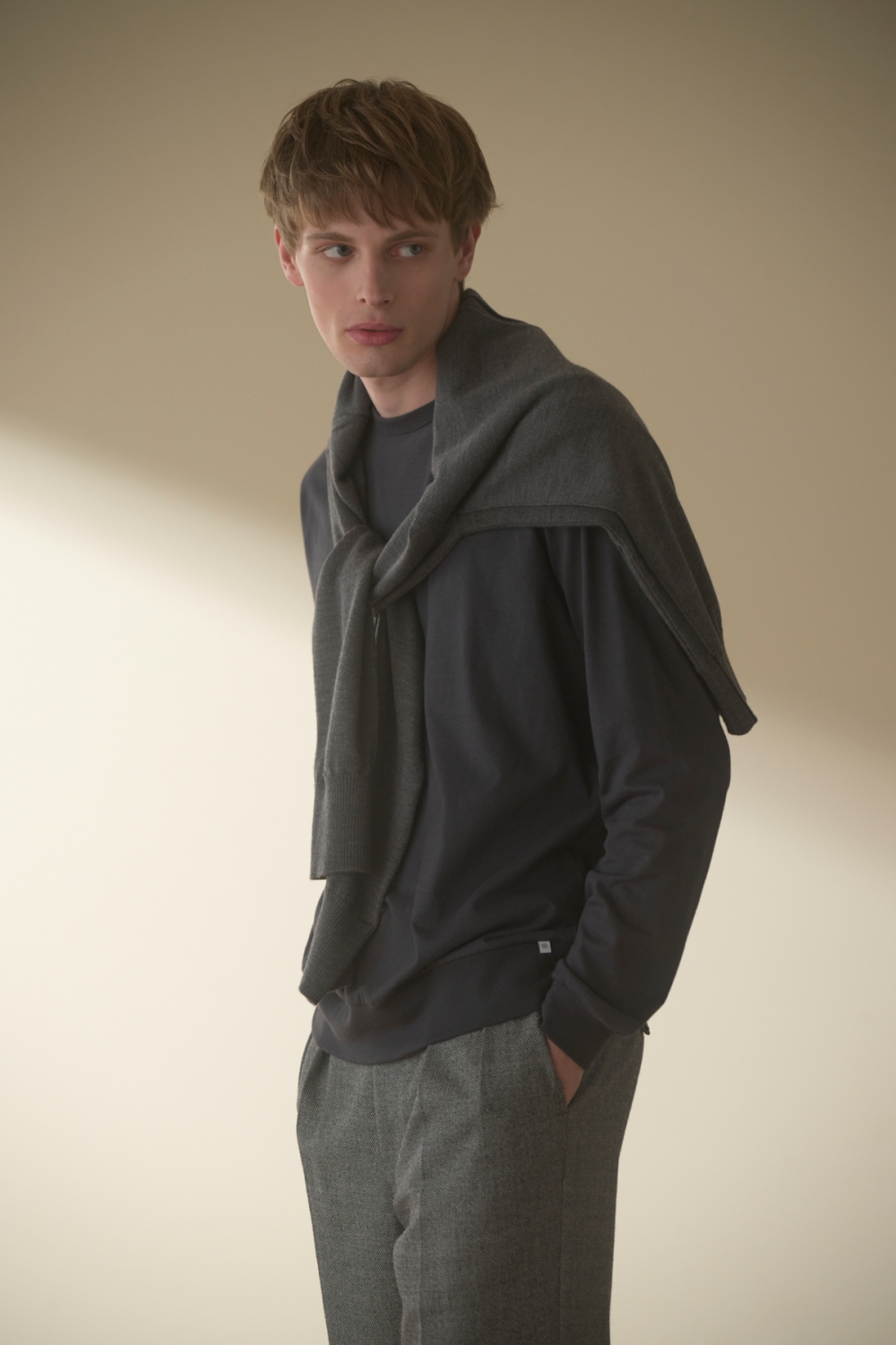 柔らかなタッチが魅力的なコットンジャージーで、洗濯後の洗いざらしのこなれ感も楽しめる素材。滑らかでソフトな肌触りがリラックス感を感じさせながら、肩肘張らない大人らしさを演出してくれます。